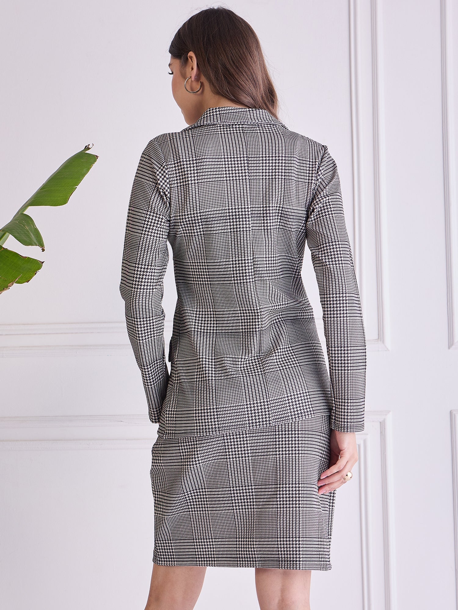 Turn heads with this ultra-chic and classy Gray&White checkered co-ord set for women, featuring a stylish blazer and a perfectly tailored skirt.