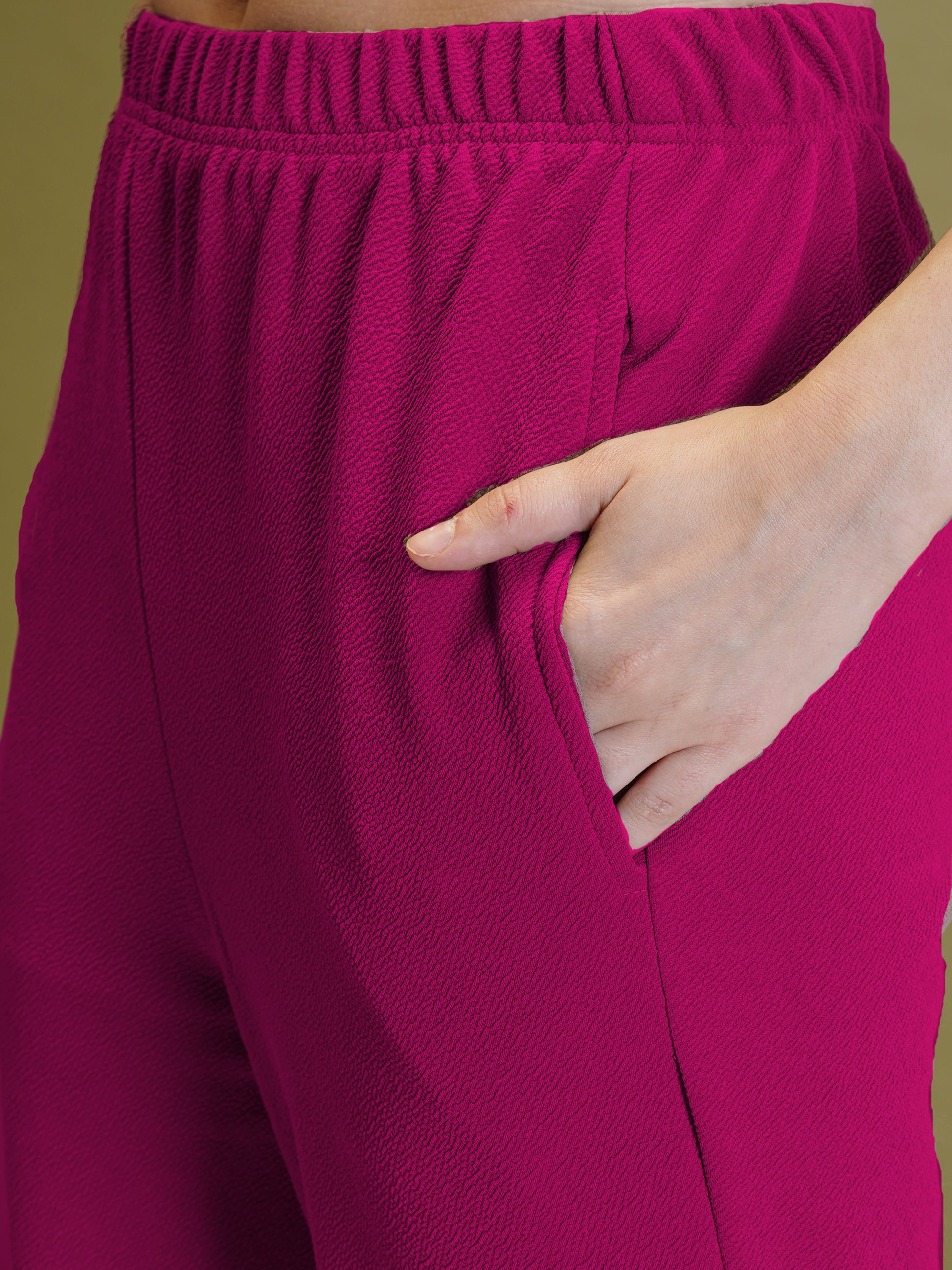 Stay stylish and comfortable with this effortlessly cool solid pink color co-ord set. It includes a half-sleeve, relaxed-fit top and matching pants with side pockets — perfect for errands or casual outings.