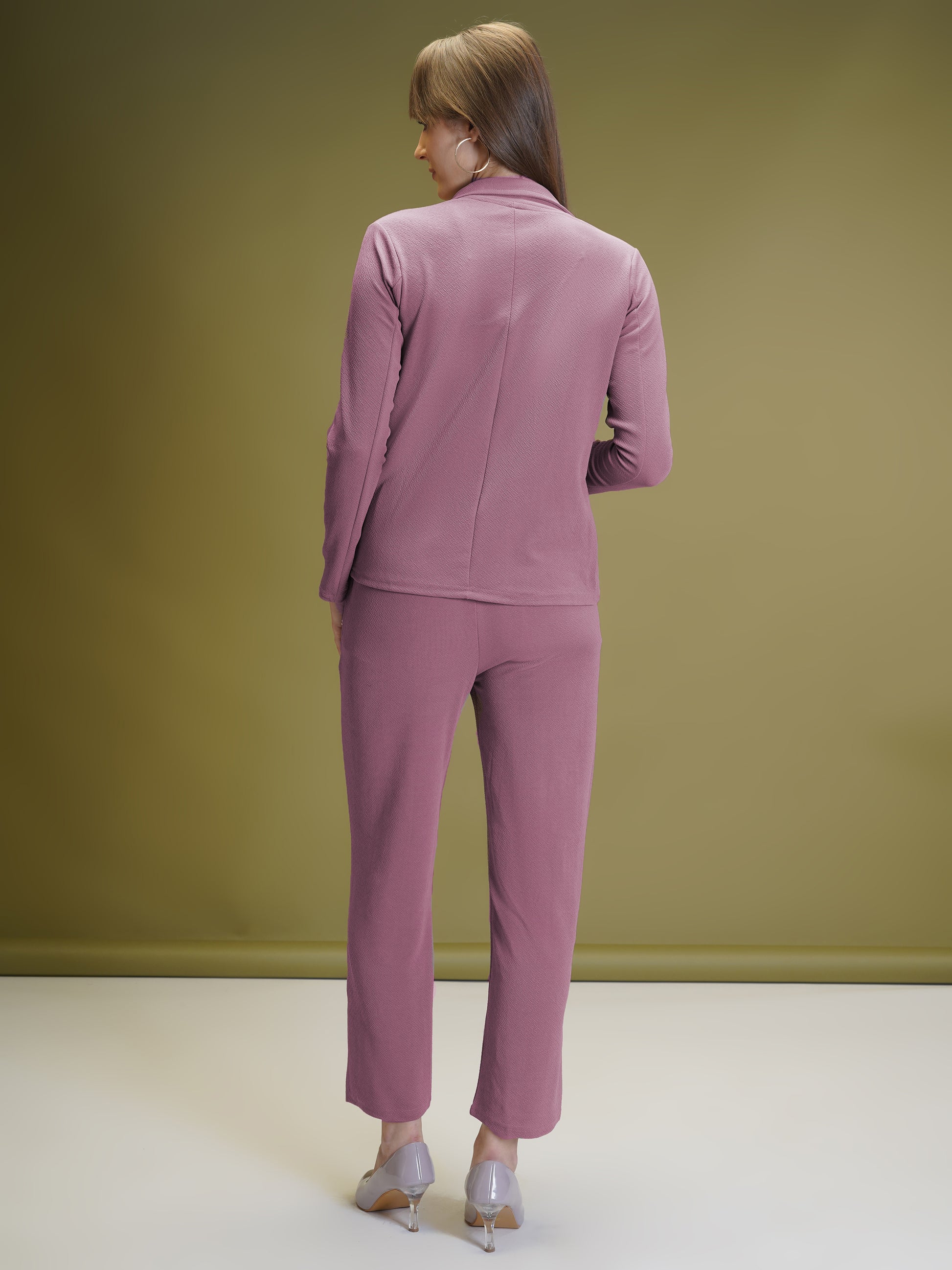 Women's Solid Onion Color Co-ord Set - Blazer, Crop Top & Pant